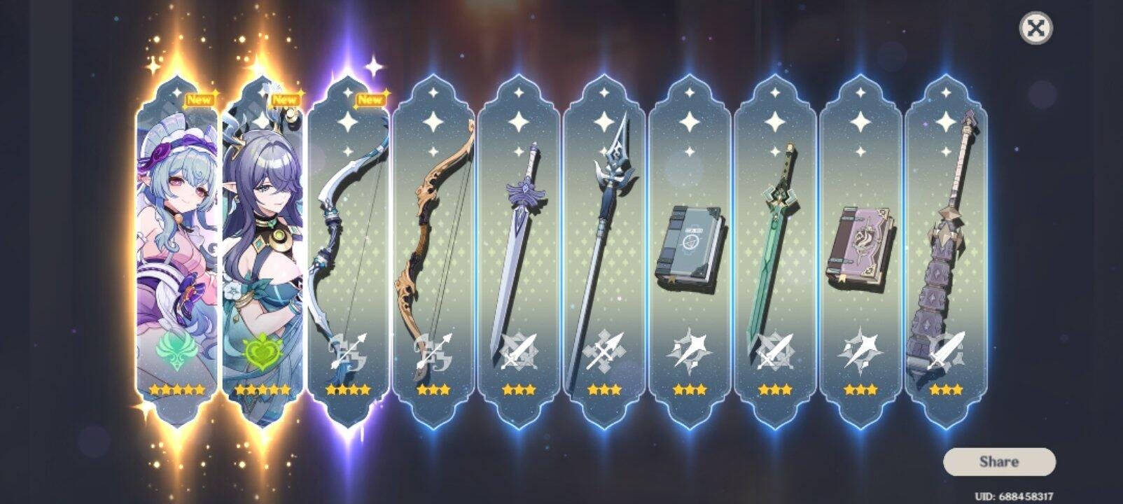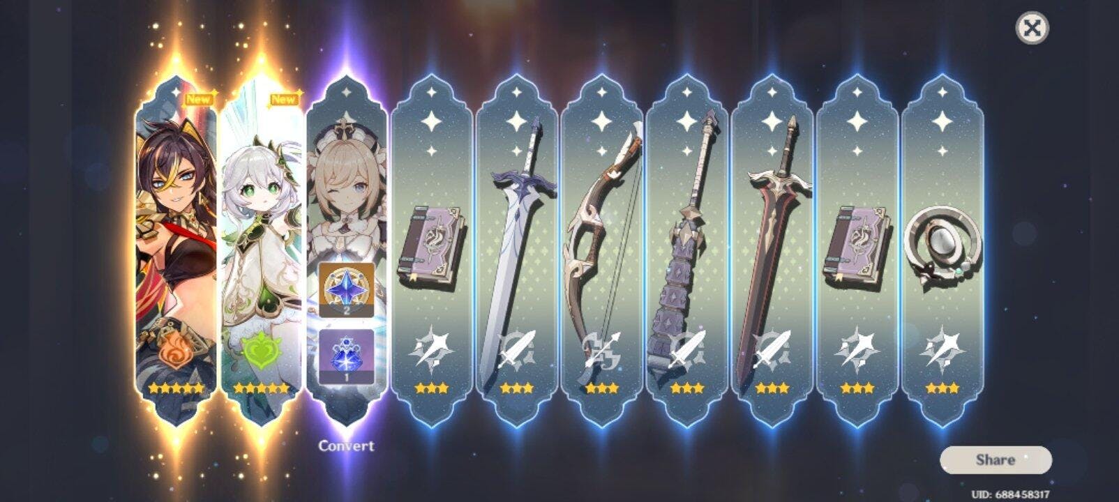 I got everything listed as 40k primos and 58 pulls