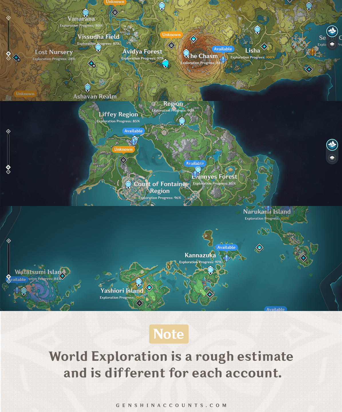 Inazuma, Sumeru and Fontaine unlocked so you can easily gather materials.